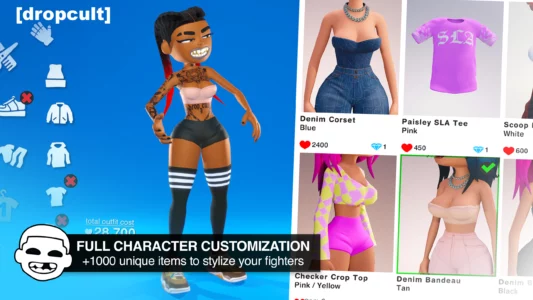 The game flips fighting games upside down. Your fighters wear trendy outfits, move to music beats, and have stylish yet powerful moves. Dropcult mixes fashion, music, and pop culture into a new gaming wave.