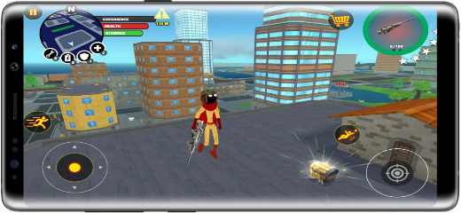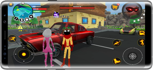 In the stickman superhero game, you fly in the air and land in a beautiful cartoon-shaped city with all the basic necessities, building structures, colorful houses, and transportation means. A map is provided on the top left corner of the game screen. Where all mission-related tasks are marked in blue. By roaming throughout this city, you can engage in activities of your choice and explore the city at your leisure.
