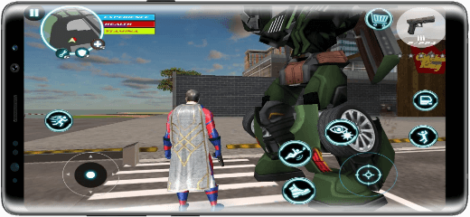 Speed junkies will love the superhero game because it features cars ranging from ordinary to sports cars, SUVs, and sci-fi cars, all with their own abilities and performance. City roads are a great place to test their speed. In addition to that, you are provided with Military Helicopters that deal serious damage as well as Combat Tanks. So that you can enjoy the battle in the city and create panic among your adversaries.