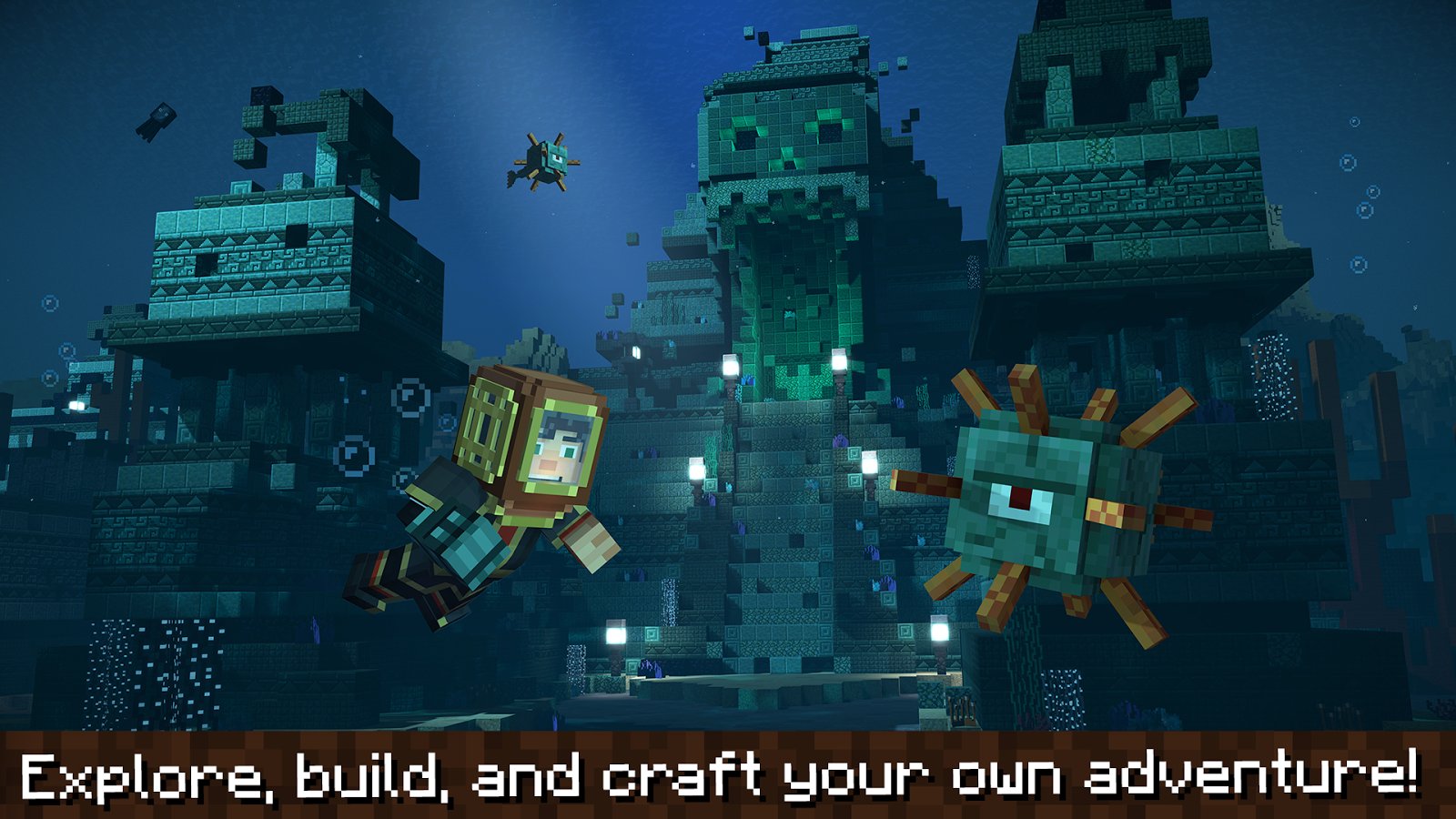 Combat and crafting are also part of the gameplay, keeping true to Minecraft. Players will craft items to help them on their quest. They will also battle mobs in quick-time events that need fast reflexes and strategic thinking.