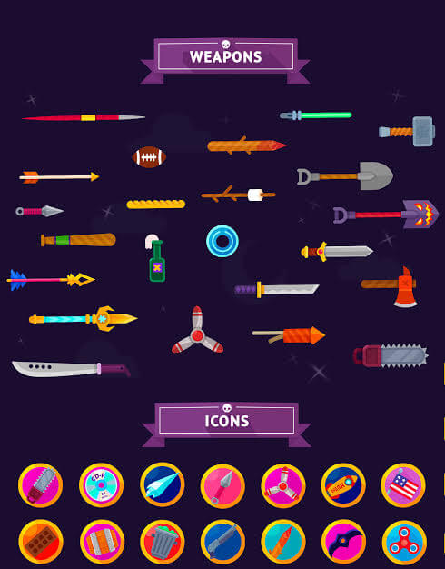 - Along with different characters, there are 41 other weapons, which are unlocked when you win. As you win a match, you get coins that Coins can exchange for your favorite weapons.