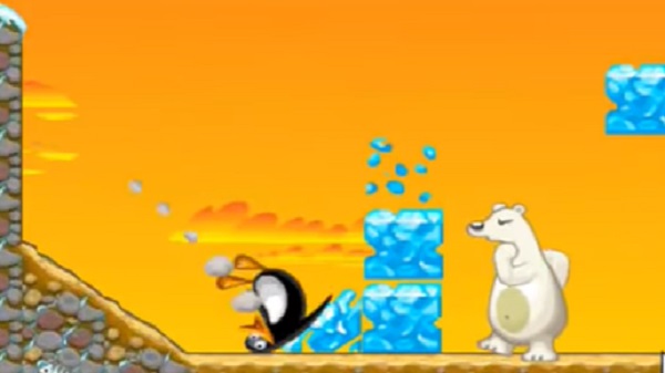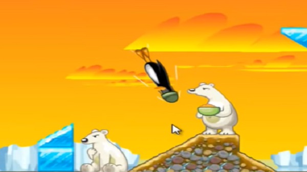 In “Crazy Penguin Catapult,” penguins live peacefully in the Arctic. Suddenly, polar bears invade their home. The game starts with this storyline. You join the penguins to defend their land from the polar bears.