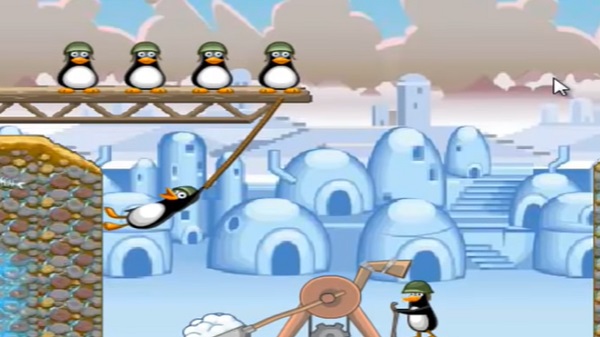 In “Crazy Penguin Catapult,” you control a catapult to launch penguins at polar bears. Your goal is to knock out polar bears and reclaim the penguins’ territory.
