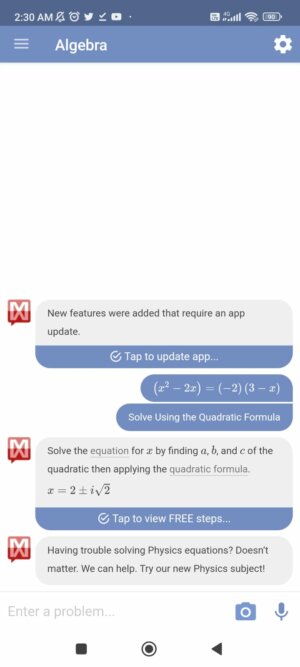 In the premium version, you can get the free steps option to find how the question was solved with easy methods. This app has no ads and is completely free of cost. There is a dozen chapter in this app where you can ask questions to get the most accurate answers. You can get answers according to the type of question you select.