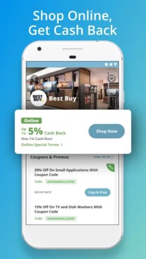 - Get exclusive offers when you shop online at select stores through the app’s Shop & Earn section.