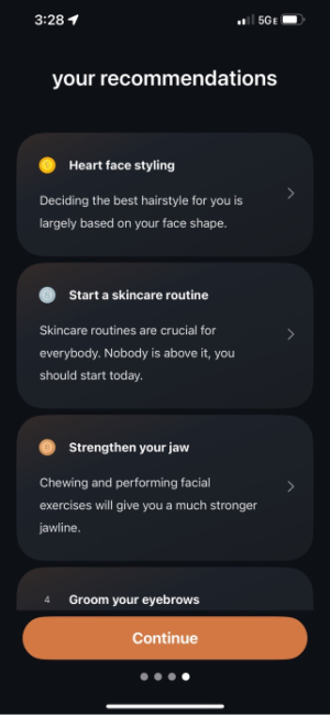 The app gives tips on skincare routines, makeup products, and fashion choices. It helps improve your self-care with each selfie.