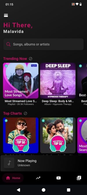 - Unlimited Music: Access a vast library of songs from different genres and artists.