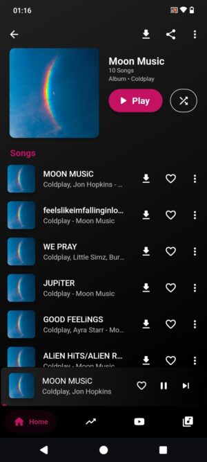 - Offline Listening: Download your favorite songs and listen to them without the internet.