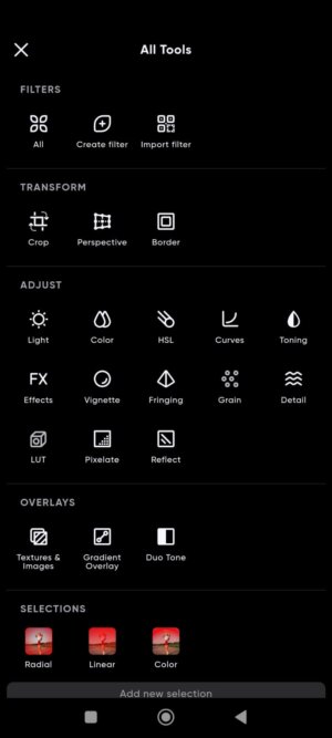 If you have no idea on how to edit, then you can check out the Polarr Pro previews section. Previews allow you to edit images automatically with one click. Don’t forget to give permission to open the image gallery for editing. This app is safe to use. You can choose an image to edit and run the preview over it for classy edits. To use this app, you don’t have to signup.