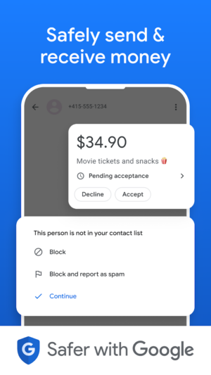 You can track all of your transactions from the transaction history section. Each payment is recorded whether it’s failed or was accepted. You can also search all transactions by name or account number to get more accurate stats. Users can also send money via mobile if they use Google Pay Apk with the mobile number added to their bank account. You can easily send money to your friends and family through their contact numbers if they are on GPay.