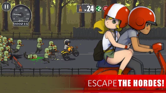 - Race through hordes of zombies in a post-apocalyptic world.