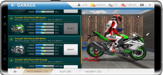 Apart from modifying his bike, the player can make himself stand out by doing a bike paint job, logo design, and customizing his outfits according to the bike’s design. Players can increase their income in Real Moto games through promotional ads provided by the brand. The combination of the player’s outfit and the bike’s design certainly positively impacts the competition, taking the excitement of the racing competition to the next level.