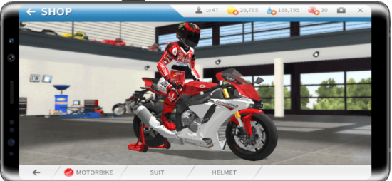 In addition to modifying engine parts to enhance the bike’s performance inside the Real Moto Mod game. Things like matching helmets and suits have also been provided, which can be manually designed by the player. Apart from the force exerted on the player during bike racing, things like gear-shifting, cornering, and bike stunt techniques fill the game with full of adventure.