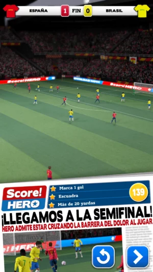 Score! Hero is a viral mobile game where you can achieve your soccer dreams. You start as a rookie player and work through challenging levels, aiming for stardom in the big leagues. The game features a unique gameplay style where you focus on critical passes and shots by drawing paths on the screen instead of controlling an entire team.