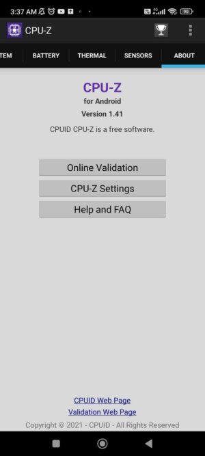 - Thermal: Device thermal sensors are very important as the smartphone gets old or heats while charging. Suppose there is any heating problem in the device; you can directly check from the CPU Z app.