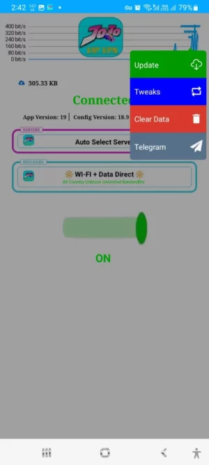 1. Download & Install: Find a safe source (like official stores), download the latest JO JO VIP VPN Apk version, and install.