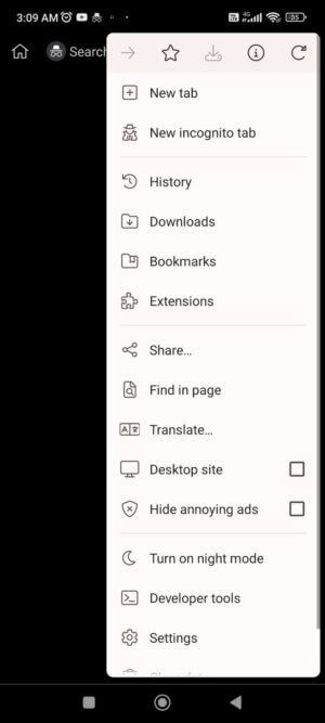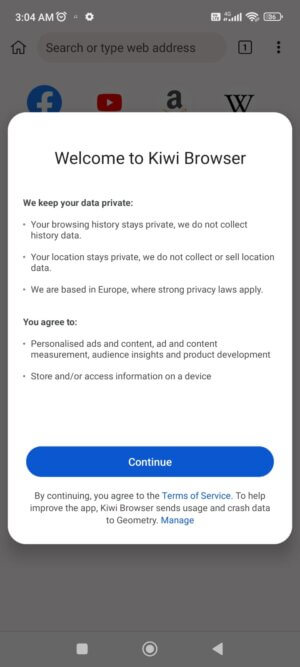 Kiwi Browser has every feature you need in a perfect browser. You can have an incognito mode, which makes your searches safe and deletes the search data automatically. You can have unlimited tabs open at a time, and still, this browser will run smoothly since it saves all data in cookies form.