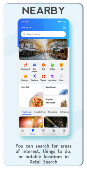 Don’t worry if you’re hungry, looking for a restaurant or your car’s out of oil, and you need a pump nearby. The Nearby section of the Petal Search app is your one-stop solution. Through this app, you can locate malls, car services, theatres, restaurants, pumps and many other things around you so that you can go anywhere without worry.