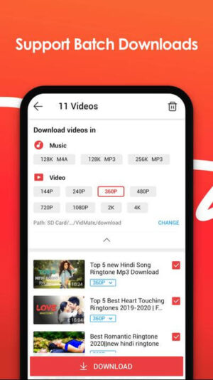 VidMate Mod is an Android app that offers a wide range of features to make your video streaming experience more enjoyable. With its advanced technology, you can easily download and watch videos from popular websites such as YouTube, Vimeo, Dailymotion and many others in HD quality without any buffering.