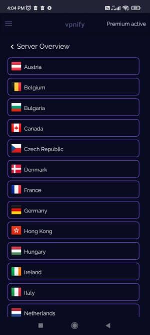 30+ locations with 200+ IPs : There are more than 30 countries which you can choose from with 200+ IP addresses which makes the Vpnify mod app highly secure VPN app with more diverse Servers to choose.