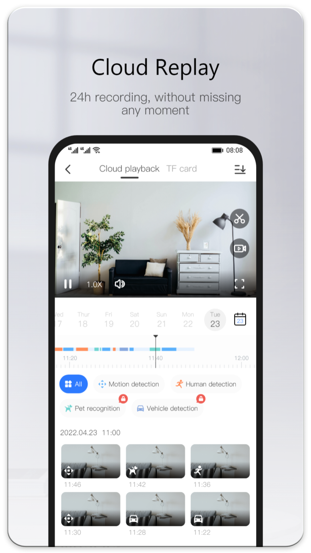 The Yoosee app comes with camera motion functionality like pan and tilt; all you need is a supporting camera device. As a result, you are able to access a wider area by remotely changing the angles and positions of your camera using just a simple swipe on your smartphone.